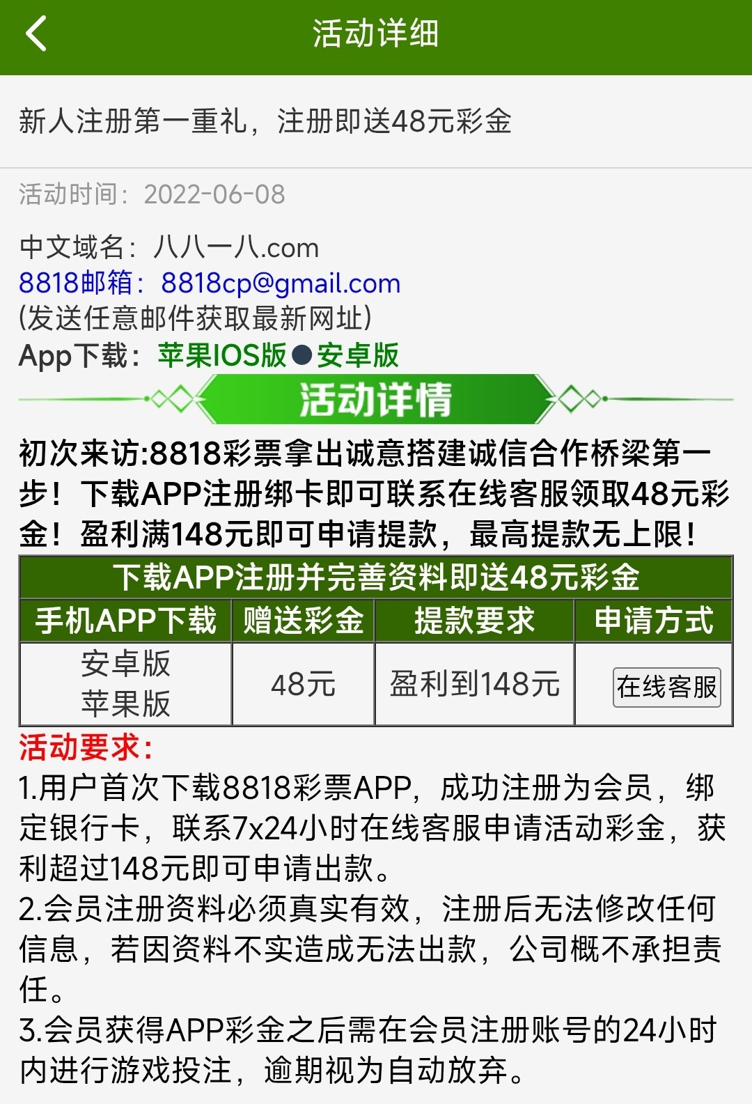 下载APP注册绑定银行卡完善资料后联系在线客服申请彩金,需盈利至148才能提款,查IP